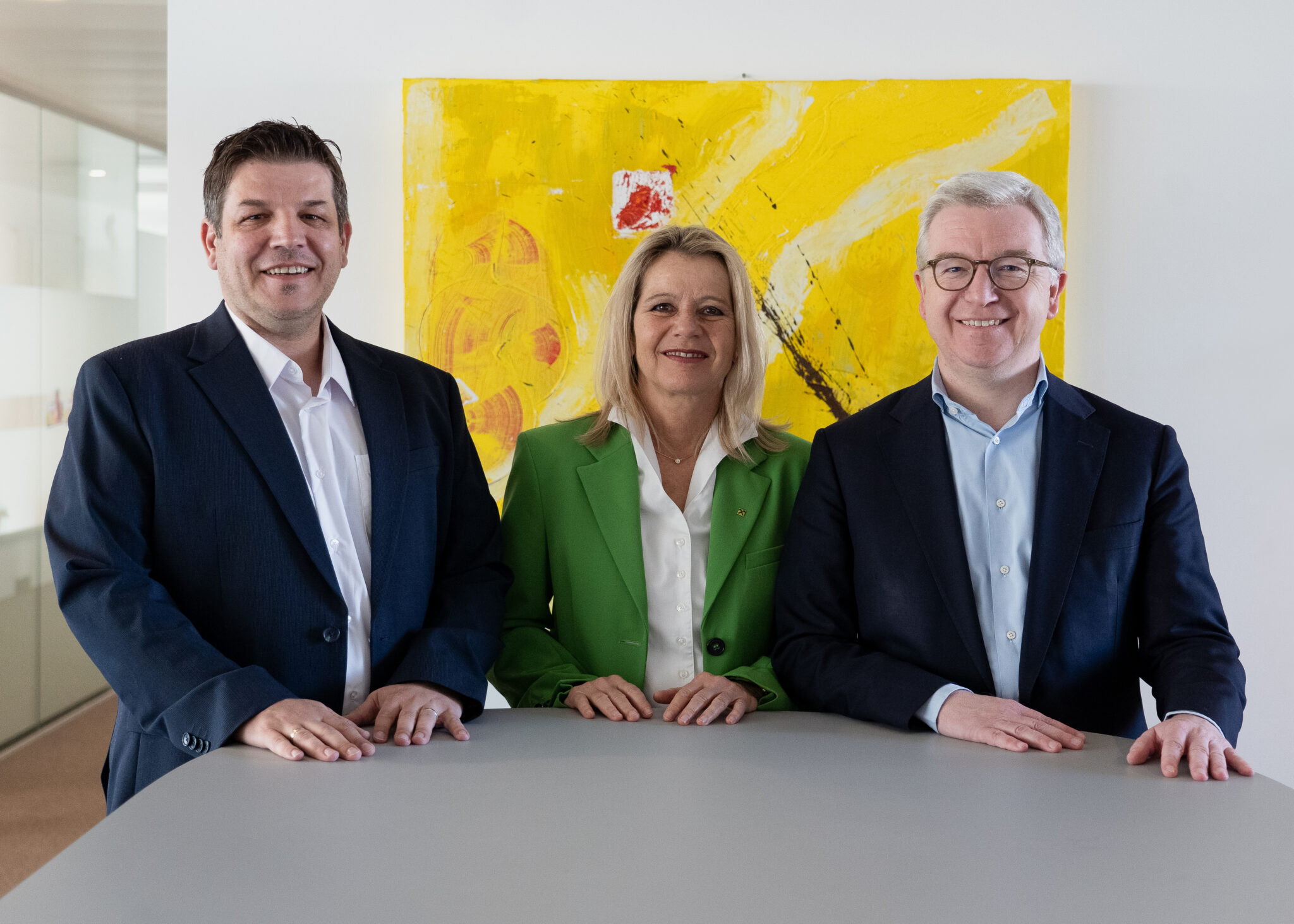 Pressefoto zum Download (Fotocredit: Raiffeisen NÖ-Wien): v.l.n.r.: Andreas Schneemann (Gründer und Geschäftsführer von Enlion), Eva Fugger (Generaldirektor-Stv.In Raiffeisenlandesbank Burgenland) und Michael Höllerer (Generaldirektor Raiffeisen Niederösterreich-Wien)